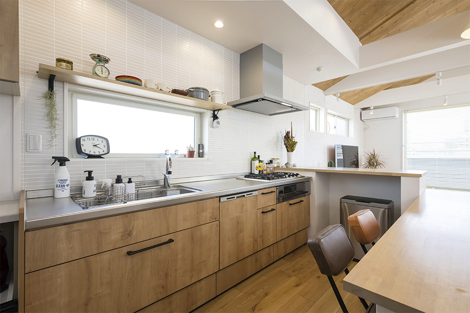 LDKの中心に家族全員が団らんできる大きな木のテーブルを造り付け、家族がほっこりとした時間を過ごせる家となりました。